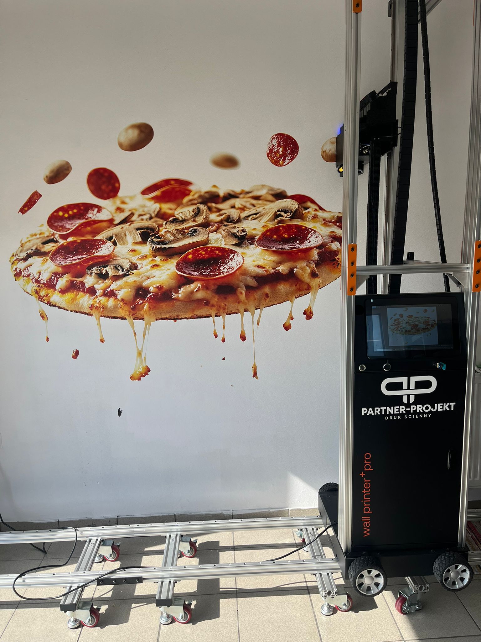 Możemy drukować obraz na każdej pionowej powierzchni, niezależnie od tekstury i szerokości! Dzięki innowacyjnej technice nasza drukarka ścienna pokryje metal, drewno, cegły, beton, szkło, a nawet strukturę baranka.