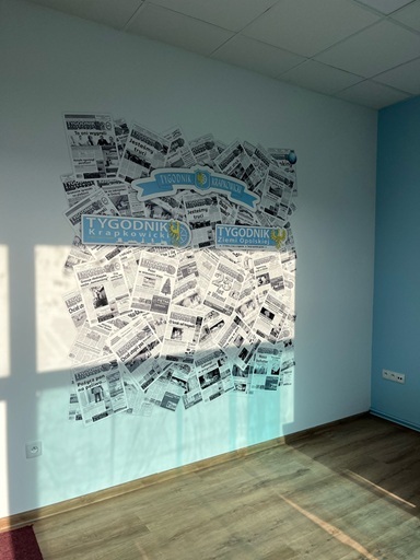 Finalna ścianka stała się centralnym punktem biura – miejscem, które przypomina o dziedzictwie "Tygodnika Krapkowickiego" i zaprasza do wspólnego tworzenia nowych historii!